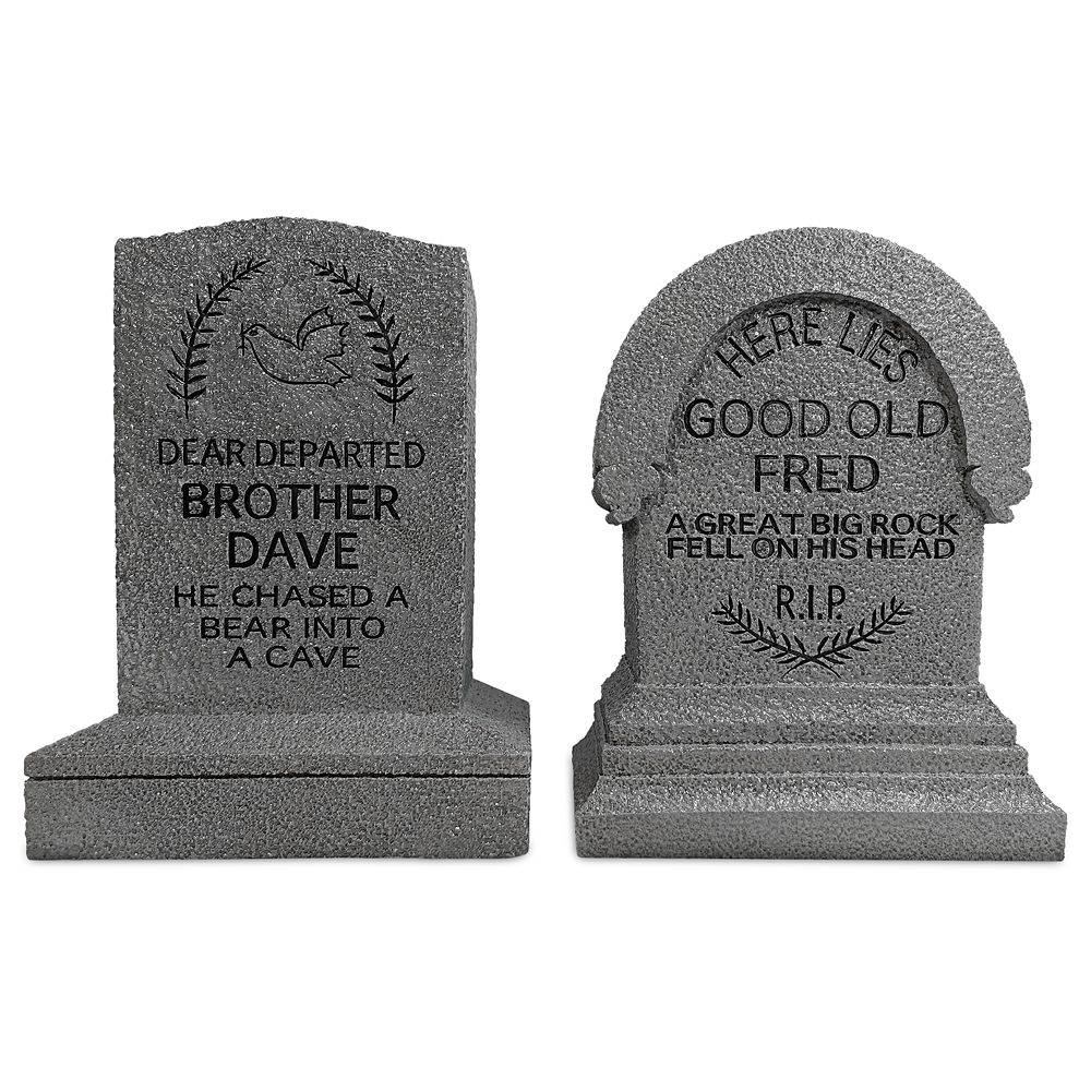 Add a bit of haunted fun to your bookshelf or desk with a bookend set that mourning the loss of Brother Dave and Good Old Fred.