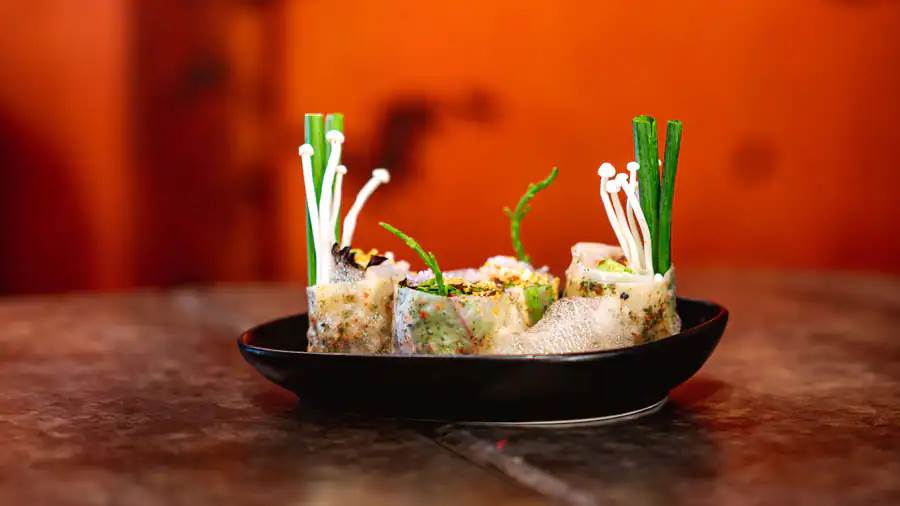 - If you’re looking for a snack at Oga’s Cantina, the Mygeeto Roll has tuna poke, zhu cucumber, green onion, enoki, eel sauce, fried garlic, vermicelli, and sea bean rolled in rice paper and garnished with ponzu foam.