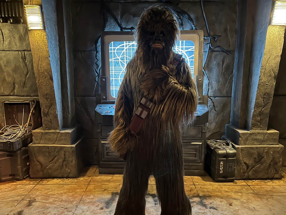 - The wait to meet Chewie was a little less once our reporter got inside the Launch Bay.