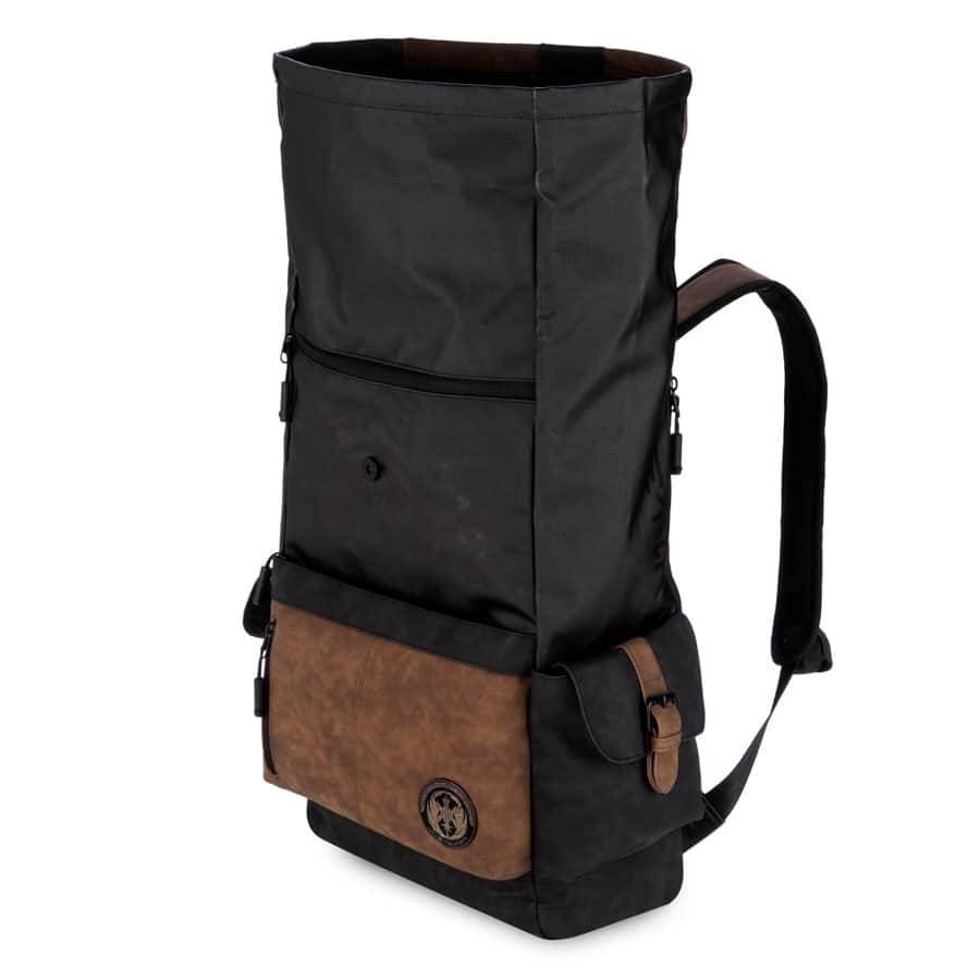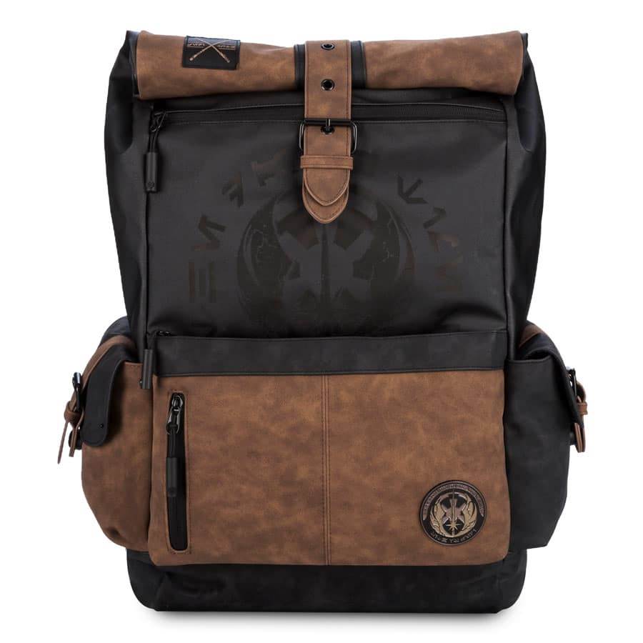 Another element of Disney’s collaboration with Heroes & Villains are these rugged Jedi-inspired bags that are perfect forlong journeys on desert planets, or short car rides around town! The collection includes an expanding backpack and a crossbody bag that features Aruebesh on one side. It reads: “The Dark Times Jedi VS Sith."