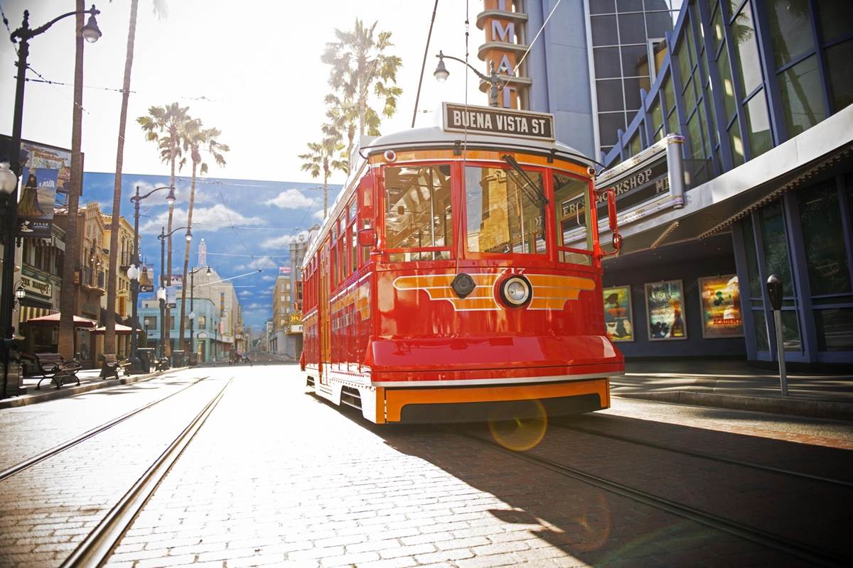 - The Red Car Trolley originally debuted in 2012 at Disney California Adventure. The attraction gives guests a chance to ease their feet and take the trolley through Buena Vista Street and into Hollywood Land at the park. In the past, the attraction had four stops: