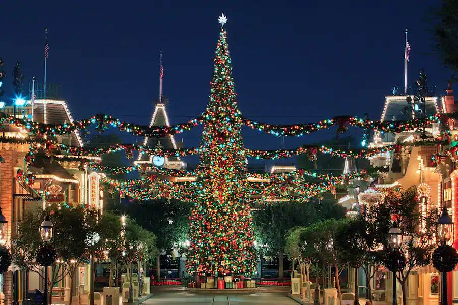 - Disneyland Park will also have a 60-foot Christmas tree on Main Street, U.S.A., as well as Sleeping Beauty Castle, which will change from day to night with shimmering icicles and twinkling lights.
