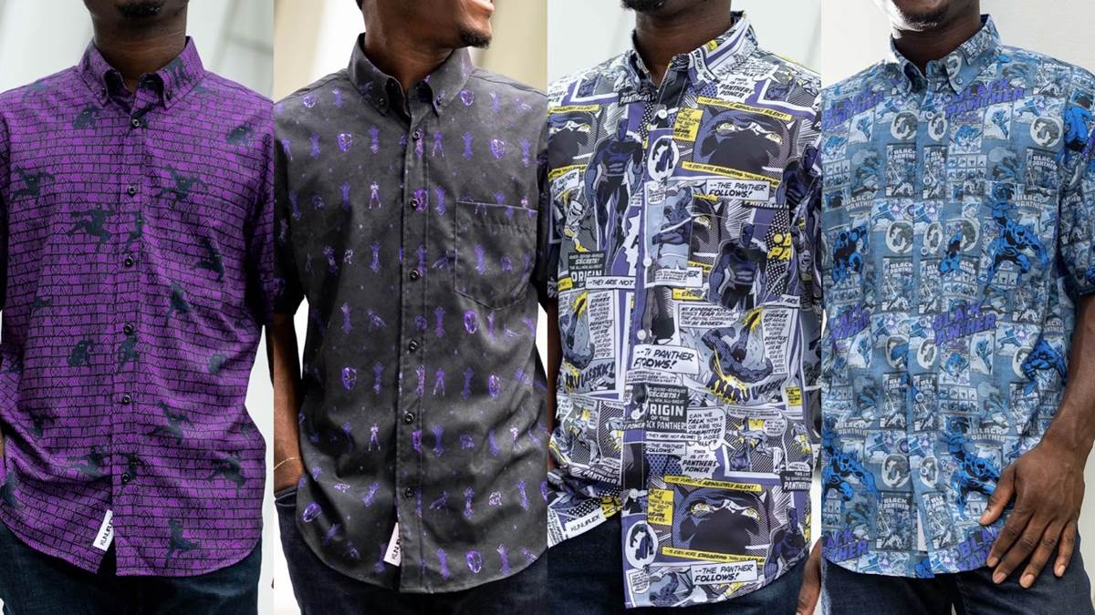 - Adorned with pouncing Panthers and a purple, Wakanda-inspired mosaic, this KUNUFLEX button down will have you ready to fight alongside T’Challa’s tribe. Battle threads don’t come any cooler than this – unless it’s a virtually impenetrable, vibranium-infused bodysuit, of course.