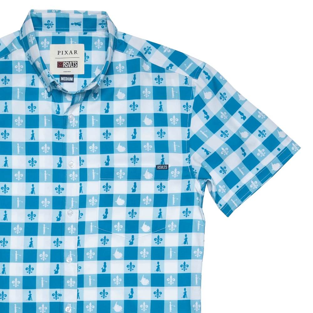 “Sporting the blue gingham pattern that graced the beloved cookbook’s cover, this shirt contains a few secret ingredients of its own – like the silhouettes of Remy, Linguini, and Chef Gusteau himself. Bon appétit!"