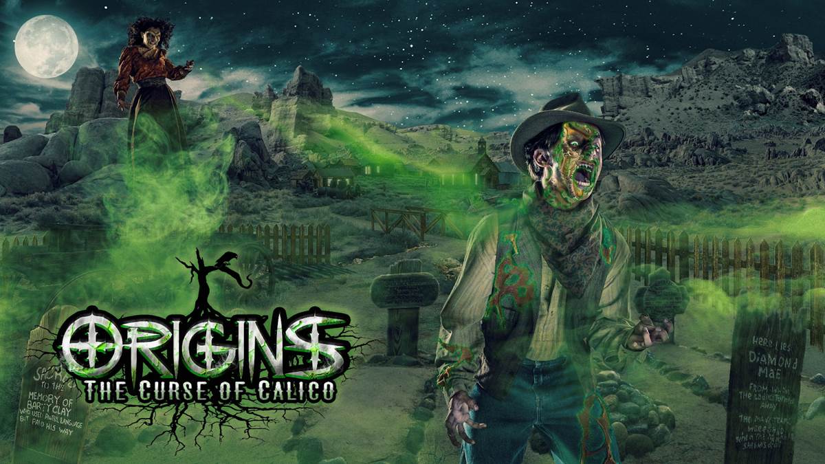 - Origins: The Curse of Calico – Pierce the veil of time and discover the secret of the evil fog that hangs over Knott's Scary Farm in Origins: The Curse of Calico. Unearth the sinister paranormal activity that plagues the town as Sarah Marshall is put on trial for her suspected crimes of witchcraft. All will be unveiled when the Green Witch rises and curses the townsfolk, transforming all who have accused her into a wicked horde of malicious creatures with an eternal quench for the living.
