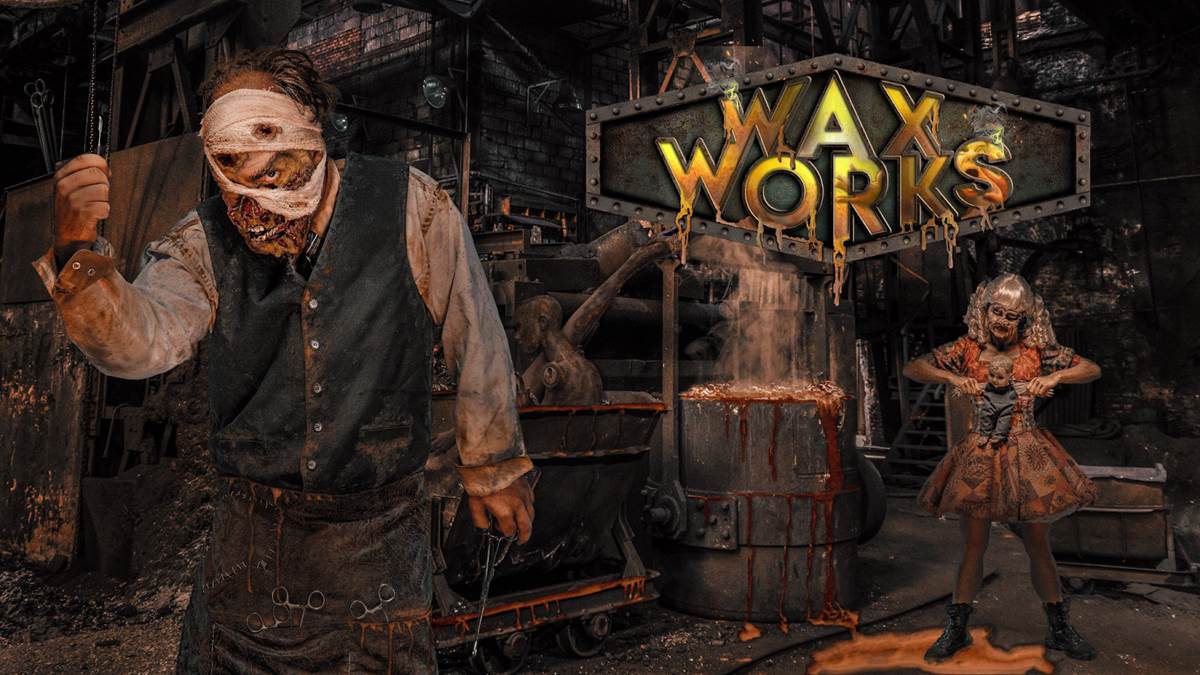- Wax Works – Mysterious lights and strange noises have begun to emanate from the eerie abandoned wax museum. It's rumored that blood-curdling screams can be heard echoing through the halls of Wax Works as victims are horrifyingly submerged into a scorching hot cauldron of bubbling wax. The once prominent plastic surgeon, Dr. Augustus Scratch, has been seen tinkering at night and is now ready to show off his beautiful yet terrifying life-like masterpieces of hot molten wax and bloody flesh. Take a closer look at his gruesome works of art and try to escape his deadly grip or become the newest masterpiece to add to his collection.
