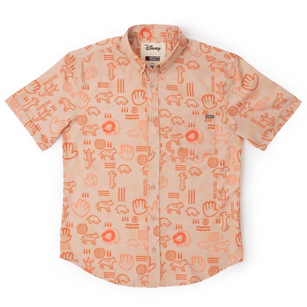 “Inspired by one of the most iconic opening scenes in movie history, this regal KUNUFLEX button down features Simba, Rafiki, and a plethora of Pride Land wildlife ceremonially honoring the birth of the future king. It’s a shirt that will fill you with instant optimism - or extreme jealousy if you’re Scar."