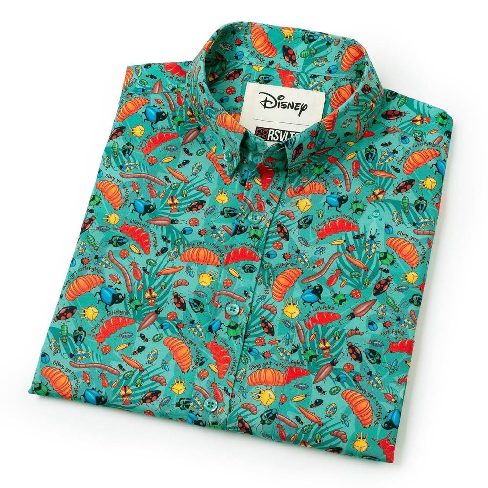 “This colorful, critter-covered KUNUFLEX (say that five times fast) depicts the most mouthwatering bug buffet anyone has ever seen – if you ask Timon and Pumbaa, that is. Kick back on your leaf hammock and experience no worries in this button-down beauty. And feel free to doze off, a close look into the brush may just reveal three pals watching your back."