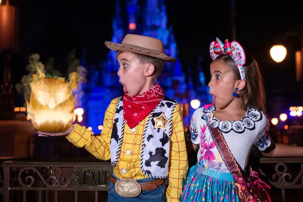 Guests visiting Mickey’s Not-So-Scary Halloween Party at Walt Disney World’s Magic Kingdom will have numerous options for special PhotoPass photos at the park, some with props or other more digital magic!
