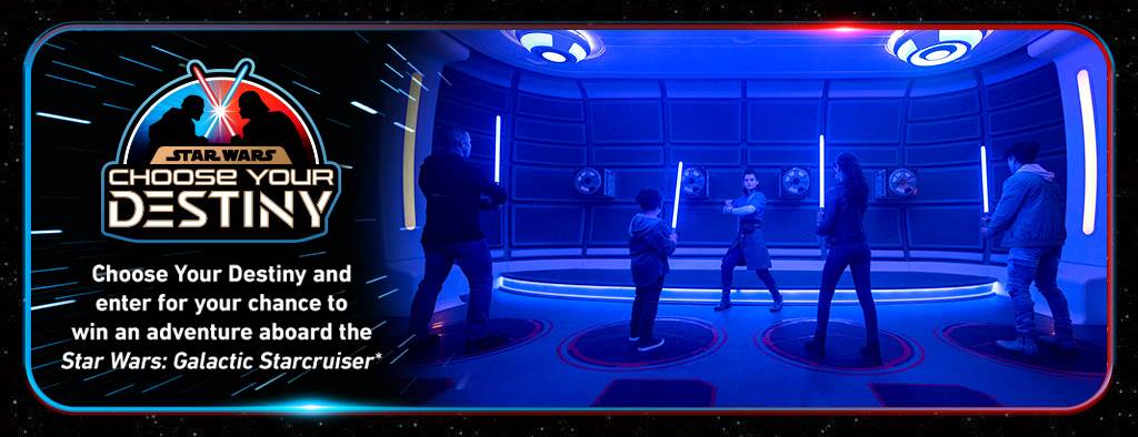 The “Choose Your Destiny" sweepstakes will award one lucky fan with a five-night Walt Disney World vacation, including a stay aboard the Halcyon starcruiser, a build-your-own lightsaber from Star Wars: Galaxy’s Edge, and more fun at the Most Magical Place On Earth.