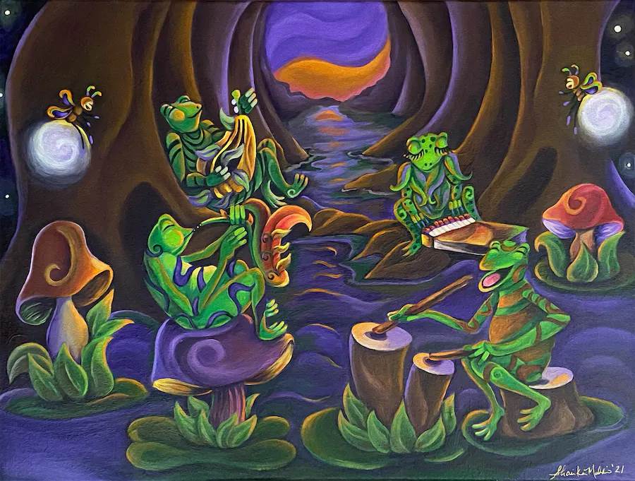 - Charita Carter, executive producer at Walt Disney Imagineering recently paid a visit to Sharika, touring her studio and getting a first look at the second piece of artwork commissioned in this series: a jazz club scene with an ensemble of affable amphibians (the first piece in the series was shared during World Princess Week last year). It’s a delightful painting that lovingly illustrates the jubilance and liveliness of this musical city.