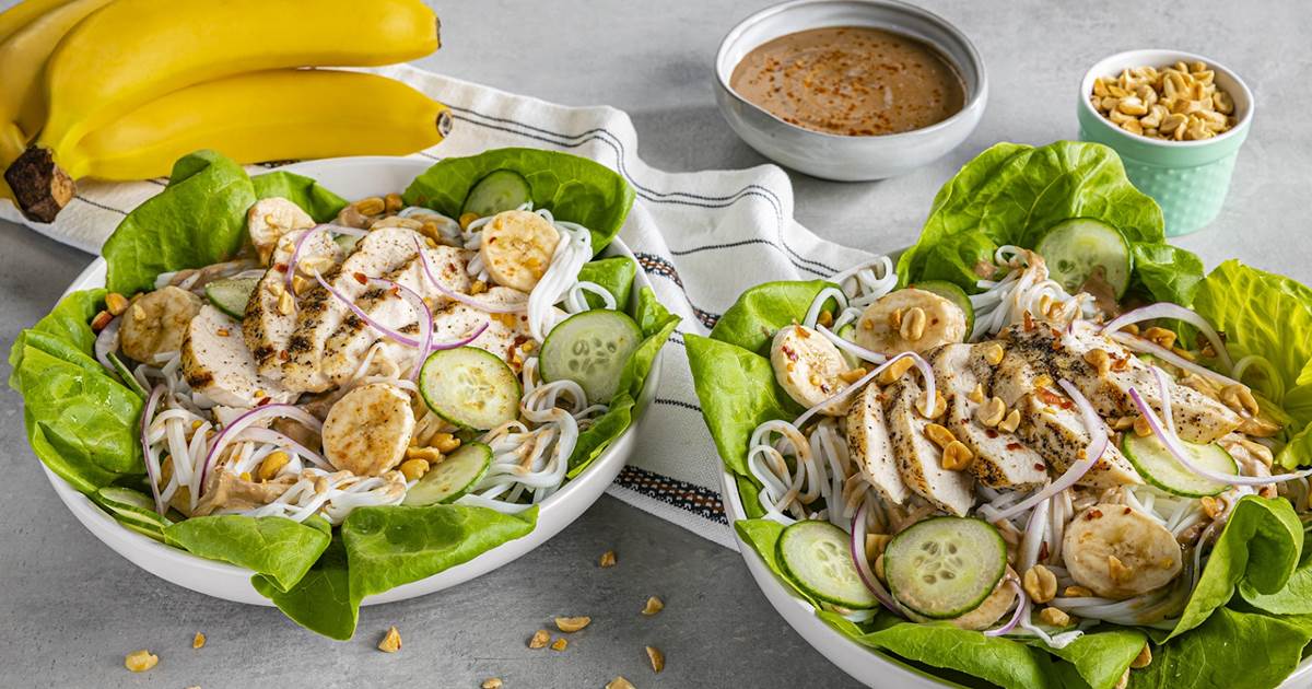 - The new Raya and the Last Dragon recipe, Five Kingdoms Noodle Salad with Banana Peanut Dressing, is composed of thin rice noodles on DOLE Butter or Romaine Lettuce topped with grilled chicken, cucumbers, toasted almonds, crushed red pepper flakes, DOLE Red Onion, and DOLE Banana and peanut dressing.