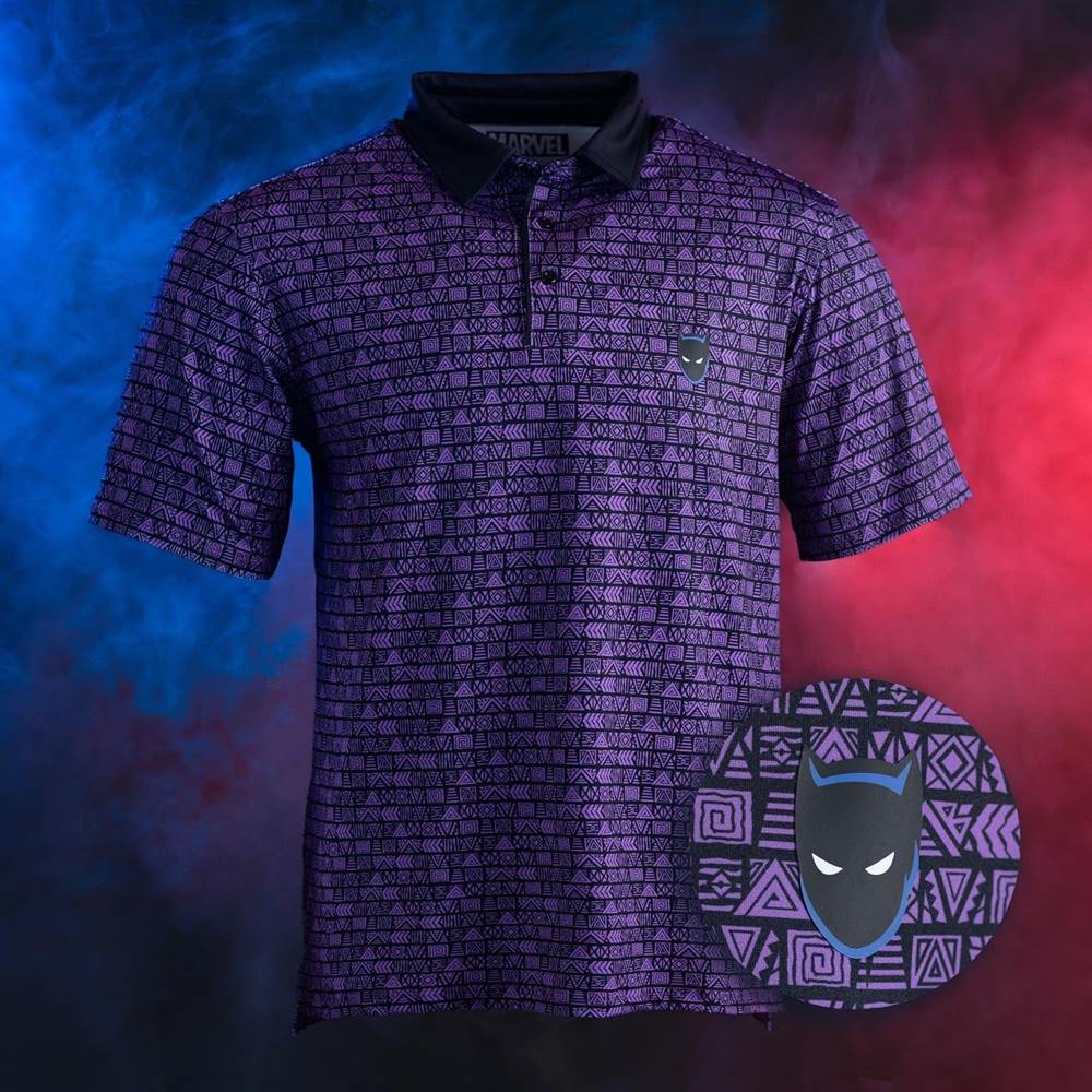 “Today we are all the Black Panther! And today we choose loyalty! For Wakanda! Adorned with a purple, Wakanda-inspired mosaic and a Black Panther icon on the chest, this light and airy All-Day Polo will have you ready to become a member of T’Challa’s tribe. Golf threads don’t come any cooler than this – unless it’s a virtually impenetrable, vibranium-infused bodysuit, of course."