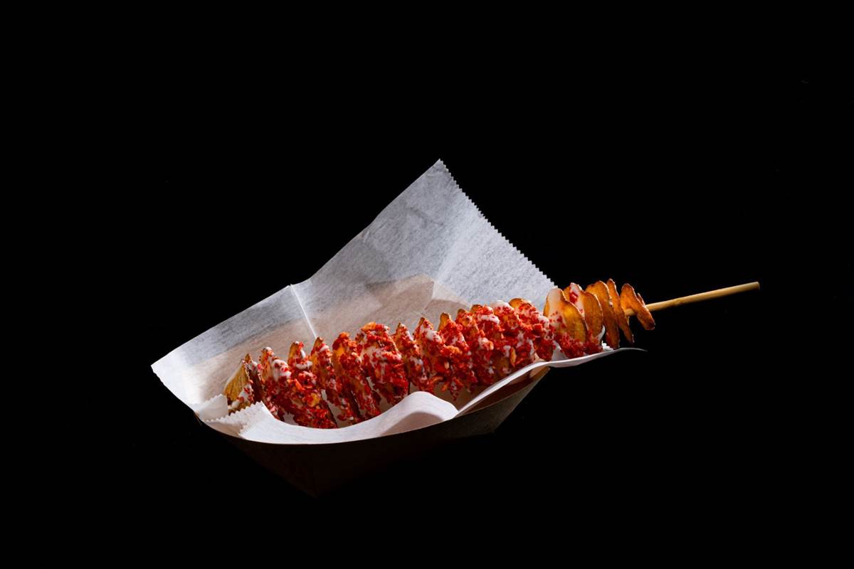 - Traditional Twisted Taters (vegan, vegetarian and gluten-free options): Fried spiralized ribbon potato thinly sliced and skewered with season salt, garlic parmesan, sour cream & chives, or ghost pepper seasoning options. Guests can also enjoy the variations Blood ‘n Guts Twisted Tater - smothered with chili and roasted red pepper queso; and Fiery Twisted Tater with Queso (vegetarian) – complete with white cheese sauce and sprinkled with flaming hot crunchy cheese puffs, and ghost pepper seasoning