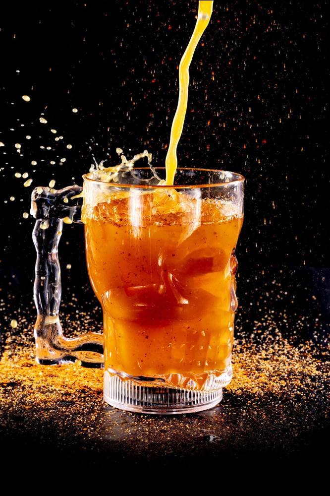 - Burning Skull: Includes tequila, lime juice, simple syrup, mango nectar, pineapple juice, smoked chili bitters, jalapeno and basil concentrate, shaken and served in a light-up molded skull cup