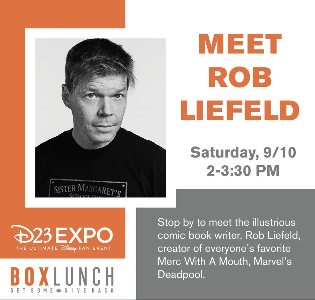 - Illustrious comic book creator and author Rob Liefeld, best known for creating Marvel's Deadpool, Cable and X-Force will appear at the BoxLunch booth #2221 on Saturday, September 10th from 2:00 p.m. to 3:30 p.m. to sign an exclusive print only available at this.