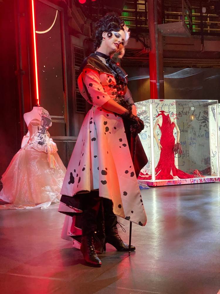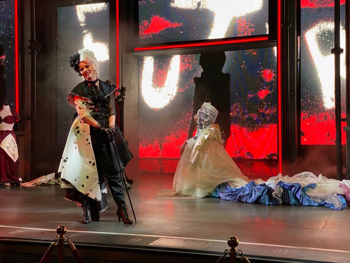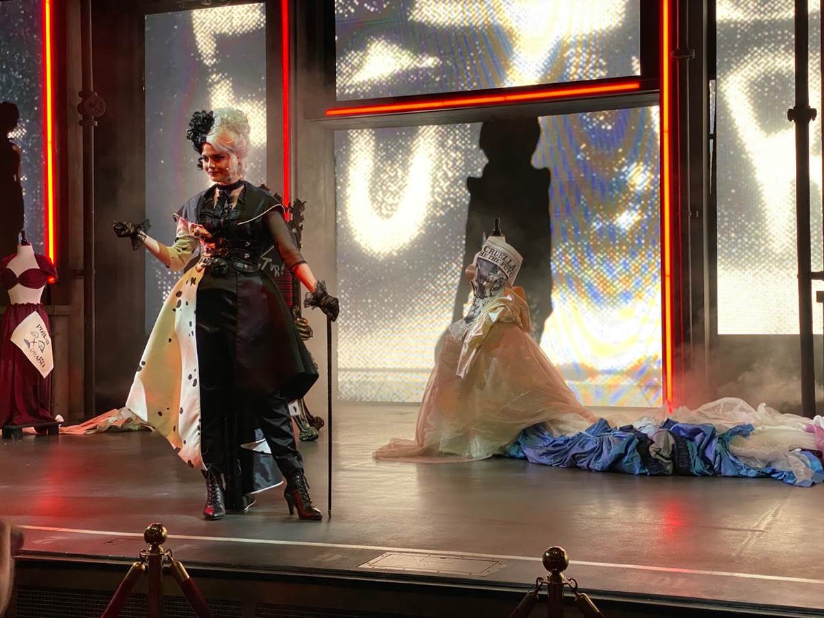 - Cruella, aka Emma Stone in the 2021 live action film, berates guests' fashion choices from the Hollywood Backlot Stage, where many of her outfits are displayed behind.