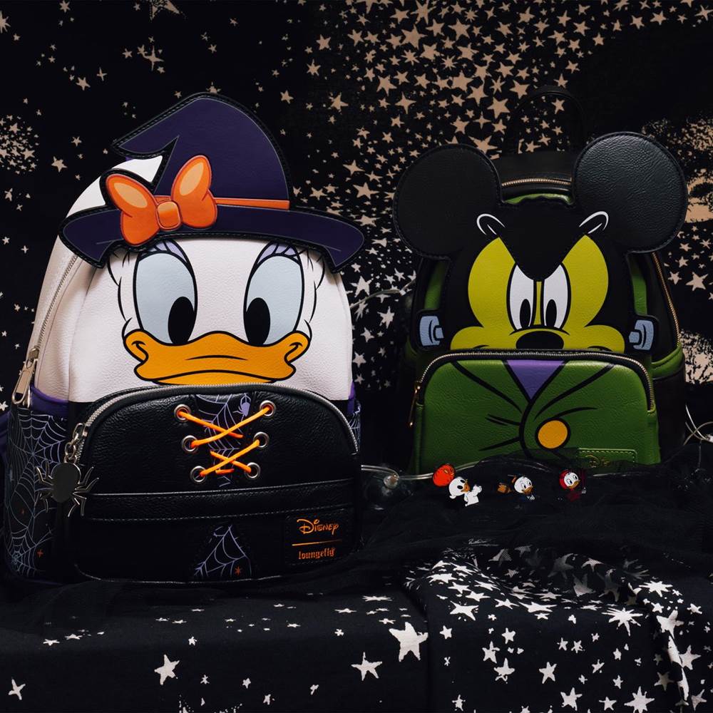 - With costumes, cosplay and mischievous magic, Disney and Halloween go hand in hand. This year, Loungefly is celebrating the season with two new backpacks and a pin set available exclusively at Entertainment Earth.