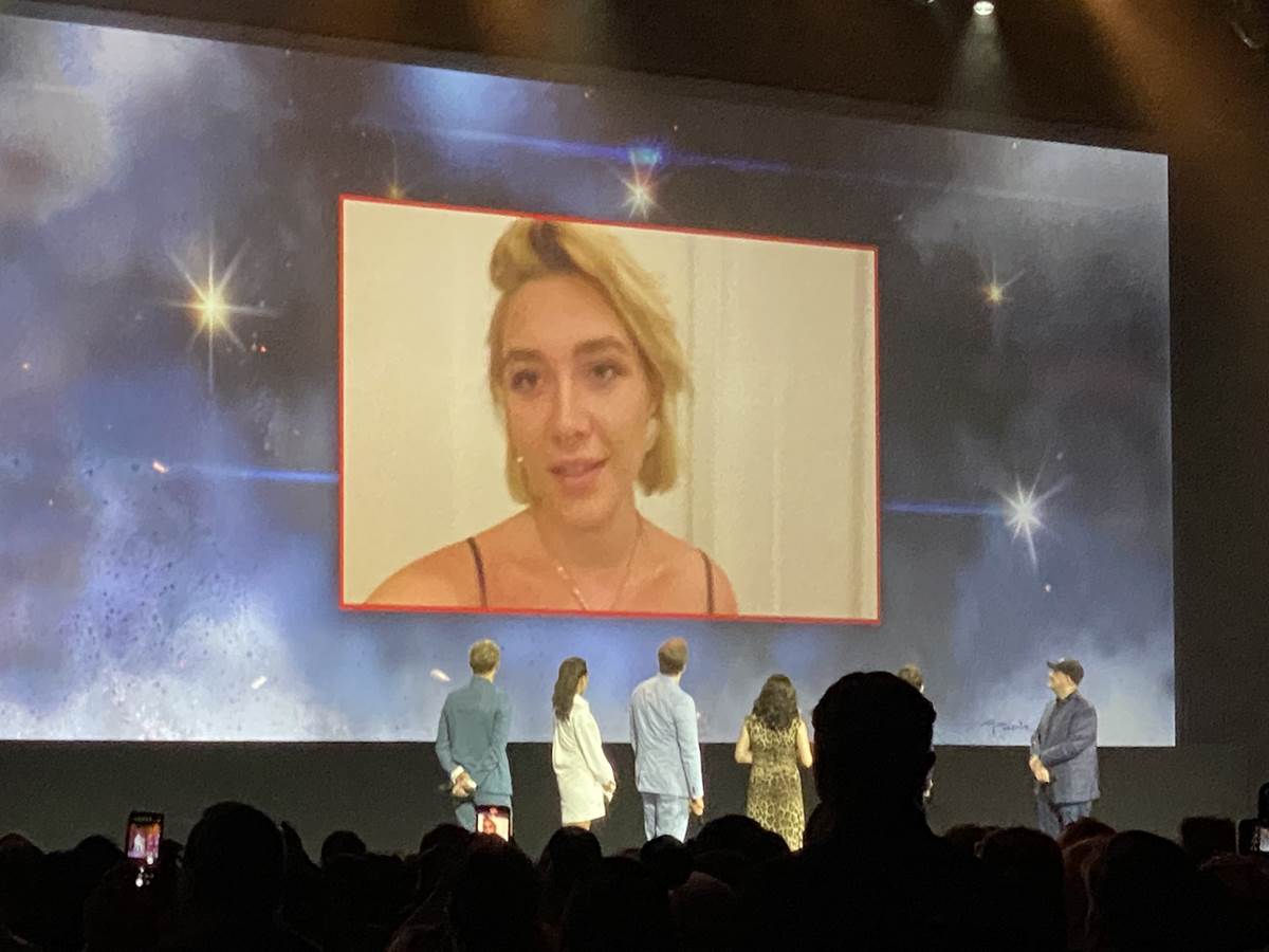 - Many of the cast and crew of the new film were on stage, save for Florence Pugh, who was reportedly not able to present in-person as she is on-location filming the Dune sequel, but did appear in a video message.