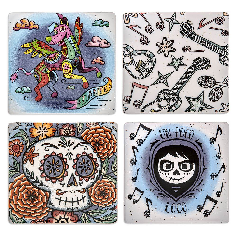 - For the home, there are plates, coasters and a pitcher all featuring Miguel (in his skeleton makeup) along with his ancestors from the Land of the Dead. If the patterns look familiar, you might recognize it from the recent Dooney & Bourke release!
