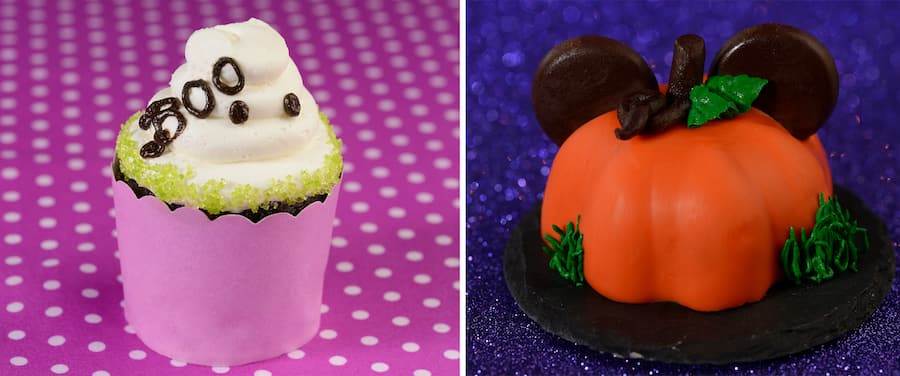 - Mickey Pumpkin Cheesecake: Pumpkin cheesecake and spiced chocolate cake with buttercream and chocolate décor (New)