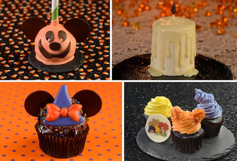 - Jack O ’Lantern Mickey Cake Pop: Jumbo pumpkin-spiced yellow cake pop enrobed in orange-colored white chocolate (New)