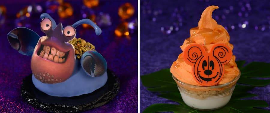 - Not-So-Scary Pumpkin Soft-serve: Pumpkin spice flavored soft-serve and coconut haupia with caramel drizzle, graham cracker crumbs, and a white chocolate Mickey-shaped pumpkin (New)