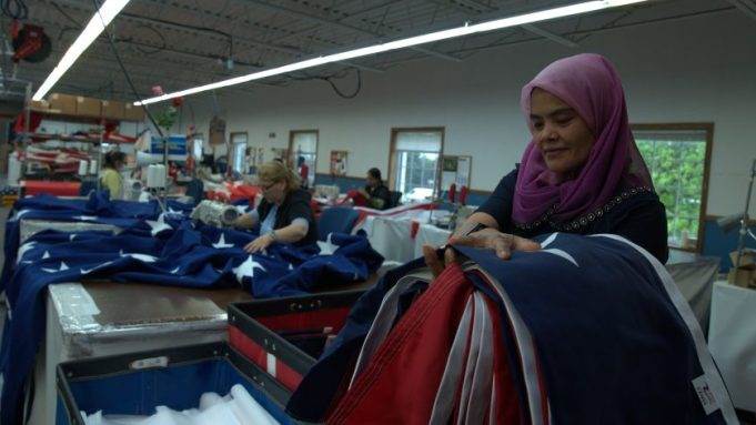 - The documentary takes viewers inside a factory in Wisconsin that sews and ships five million American flags each year.