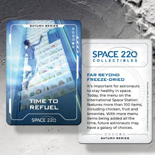 - The Instagram post read: We have some out-of-this-world news! Space 220 is debuting three new collectible trading cards, Saturn, Jupiter and Mars, starting Sept. 20 in honor of the restaurant’s 1-year anniversary at EPCOT.