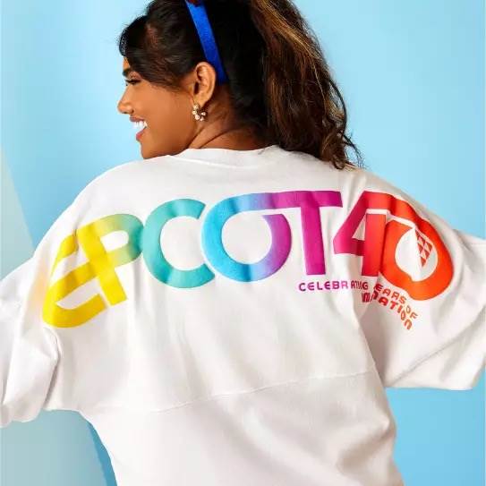 - Right now the only tease we have is of a Spirit Jersey that’s stark white with a giant “EPCOT 40" across the back shoulders. The puffy lettering matches the current font style that is itself a throwback to the park’s original logo from 1982 and features a spectrum of colors, transitioning from yellow to orange.