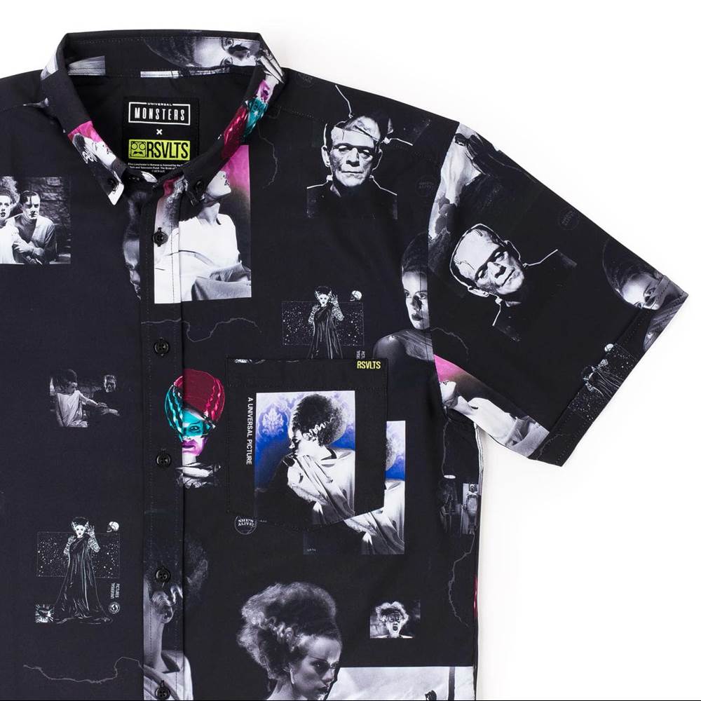 “What's your style? What are you going for? Is it to simultaneously delight and horrify friends, family, and onlookers everywhere? Well, then do we have something for you… It's the official Universal Monster Mashup! This button down is a beautifully dark hodgepodge of the most classic creatures, monsters, and mummies to even grace this earth. From Frankenstein's Monster to Count Dracula to the Creature from the Black Lagoon, this shirt will keep you stylin' all through the spooky season.“