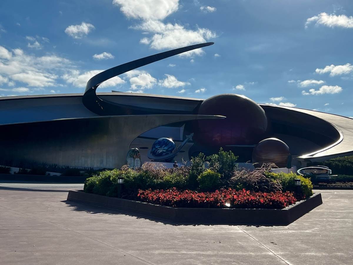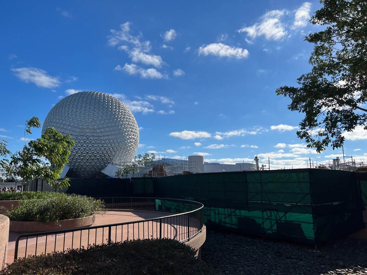 Spaceship Earth looks great, except for this strip of fabric hanging underneath near the entrance to the attraction.
