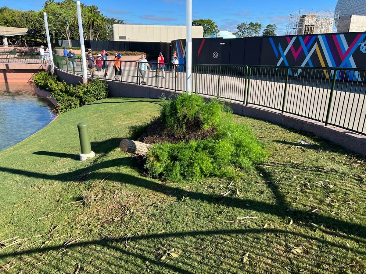 No visible damage to the foliage in front of The Seas with Nemo & Friends.