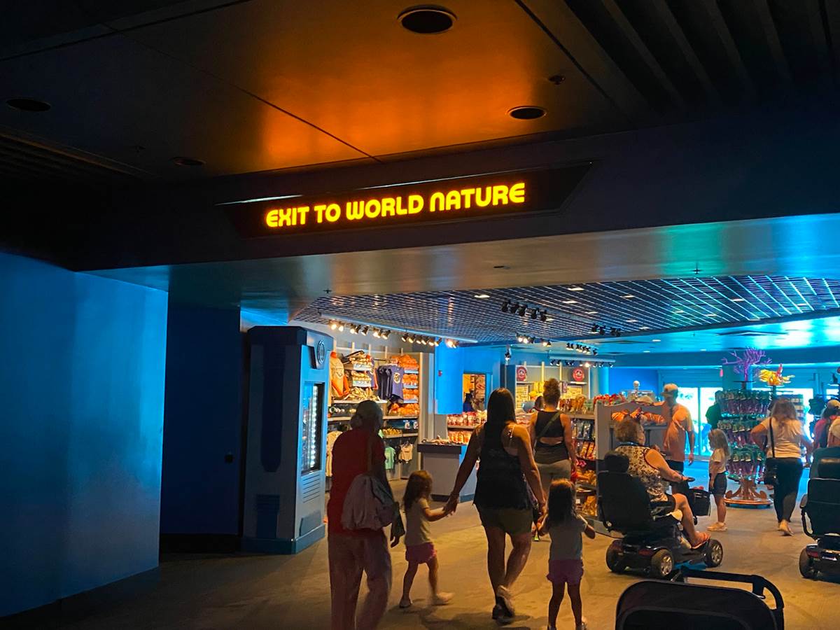 - That sign has been updated to reflect the new name for that area of the park and now says “Exit to World Nature."