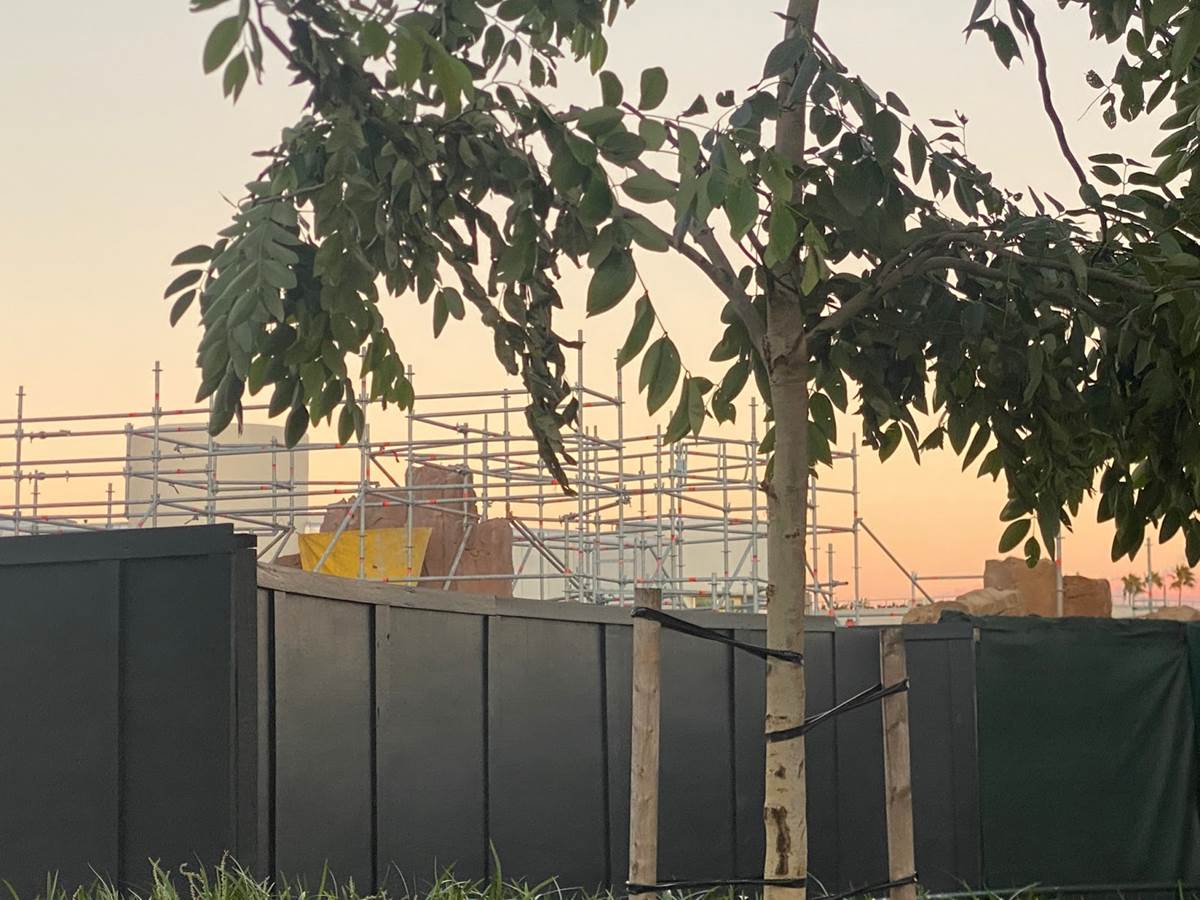 A wall has been erected, likely to serve as a barrier between the attraction and backstage areas.