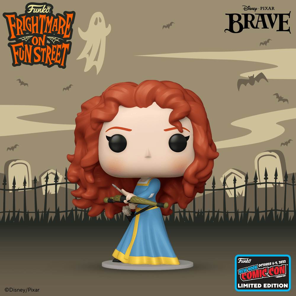 Princess Merida gets another chance to shine in this new Funko that features her in the blue and gold dress she wears as she bests the other archers. Her hair is flowing free and she’s holding her bow.