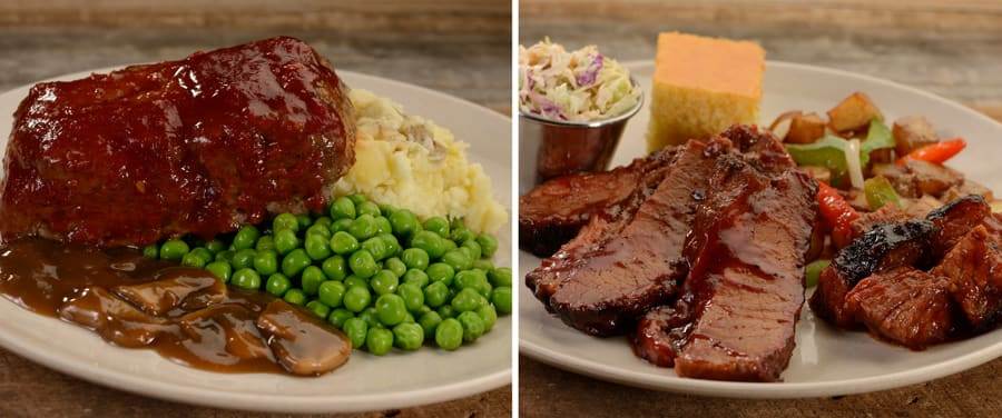 - The Country-style Baked Meatloaf features buttery green peas, chunky mashed potatoes, and gravy for a classic meal. The Barbecued Brisket and Burnt Ends with potato hash, fiery coleslaw, and cornbread features some comfort BBQ fare packed with flavor.