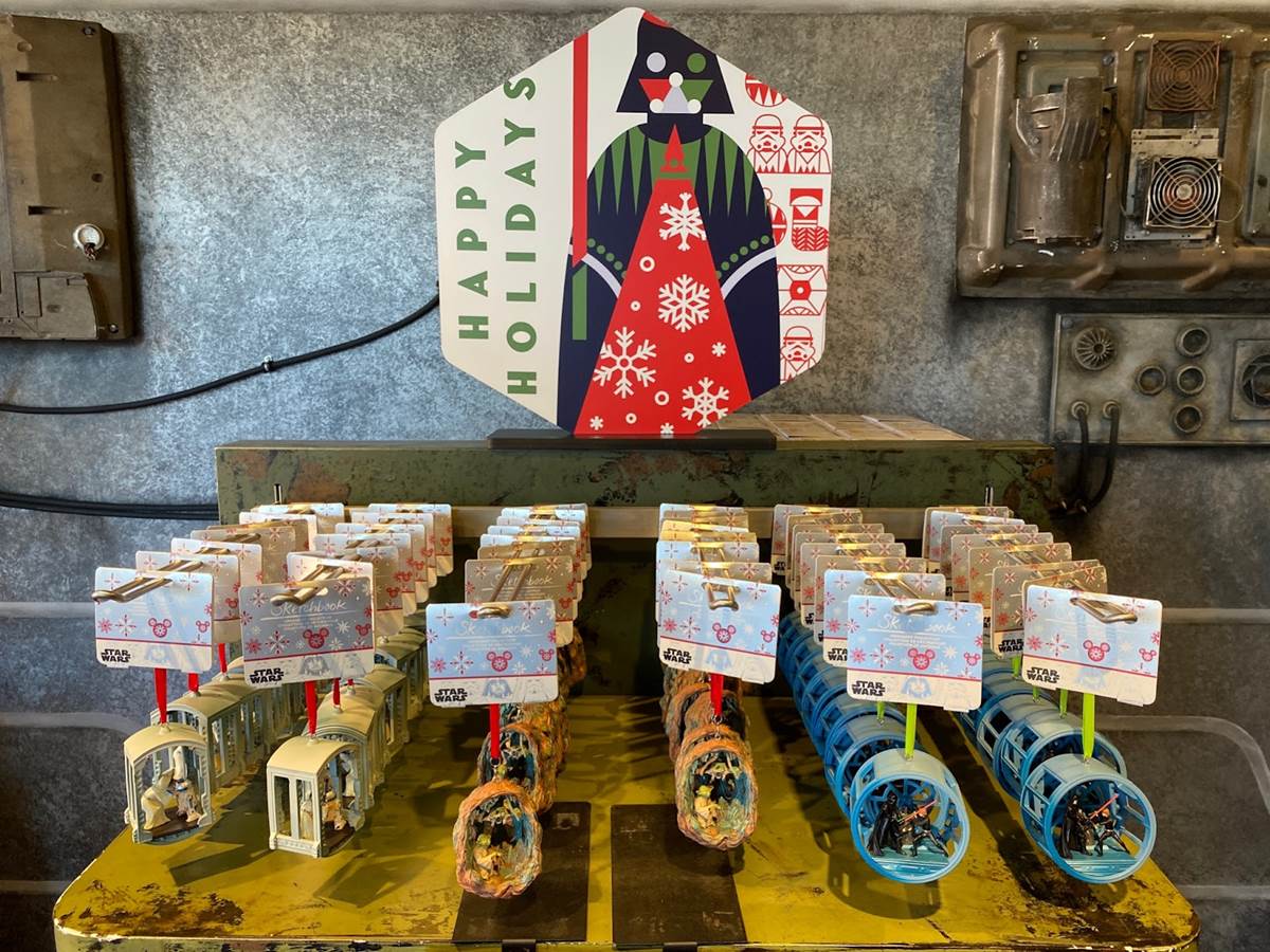 The holiday season is almost upon us, and even the creatures of a galaxy far, far away are celebrating, with some very inventive new merchandise that we spotted for sale at the Star Wars Trading Post in Downtown Disney.