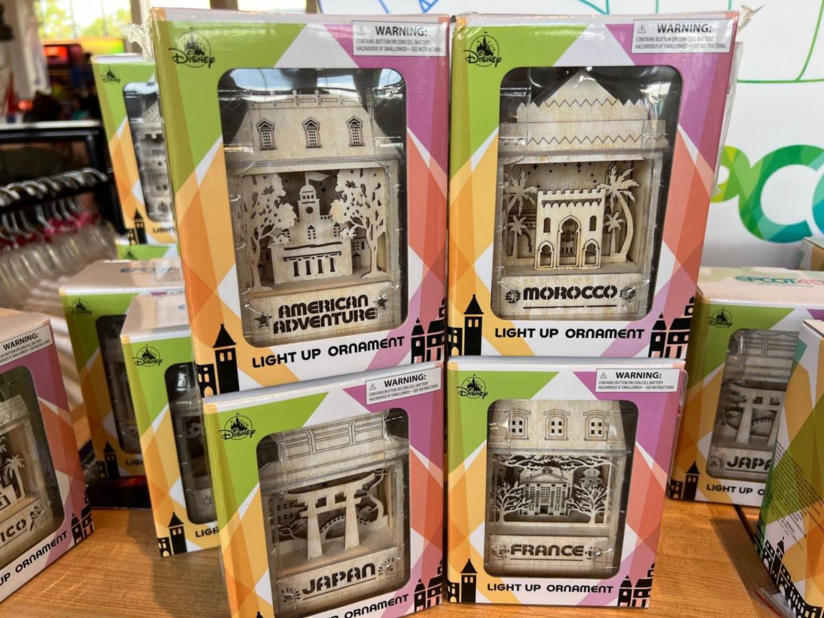 Photos: Light Up Wooden World Showcase Ornaments Released at EPCOT’s Creations Shop