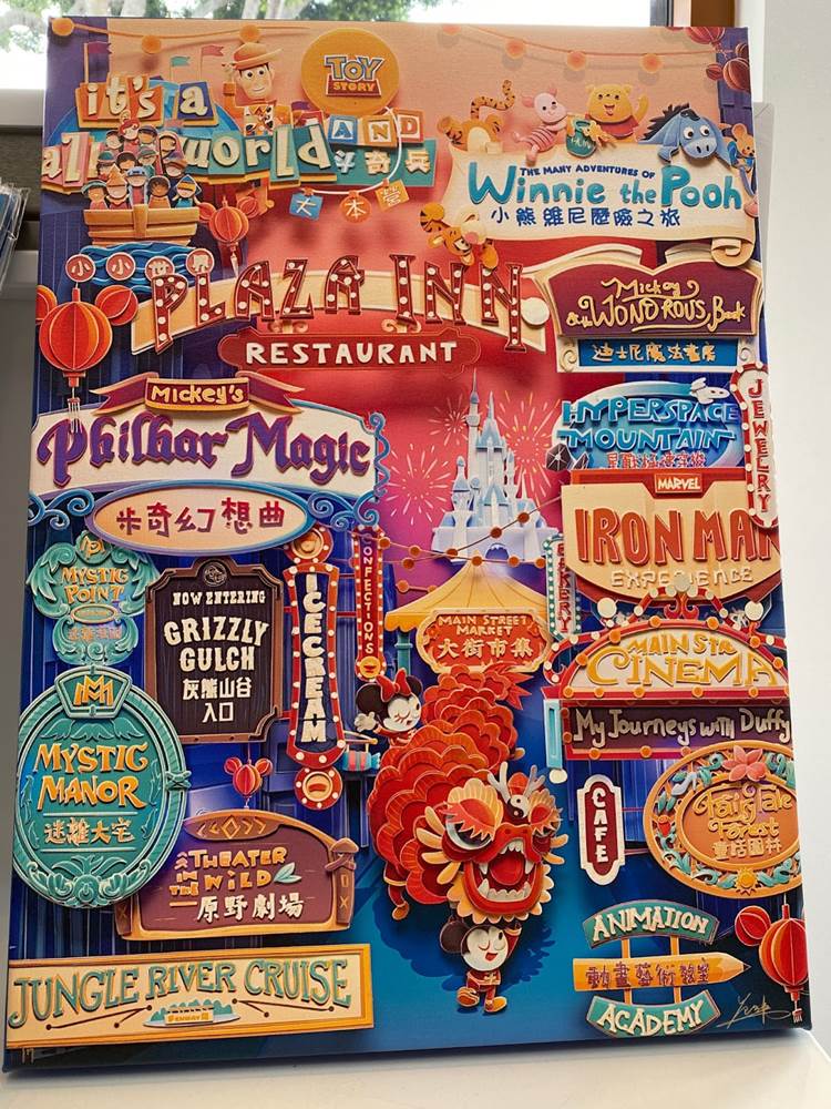 - First is this adorable piece featuring different attraction logos from Hong Kong Disneyland, which was available as a canvas print and a regular print.