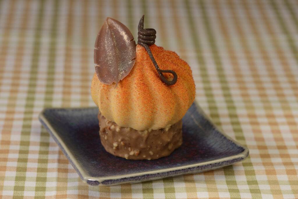 • Mini Pumpkin: Pumpkin mousse, caramel, dulce crunch, and chocolate décor (New)