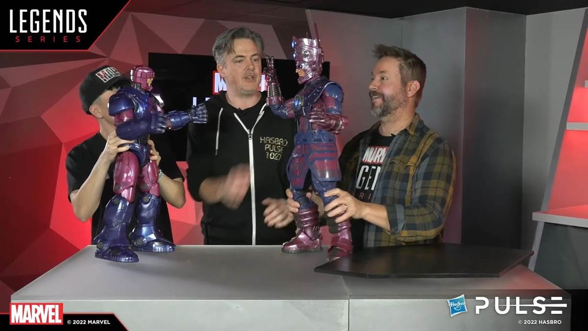 The Marvel team began their segment of the stream by showing off a battle between the enormous HasLab Sentinel and Galactus figures.