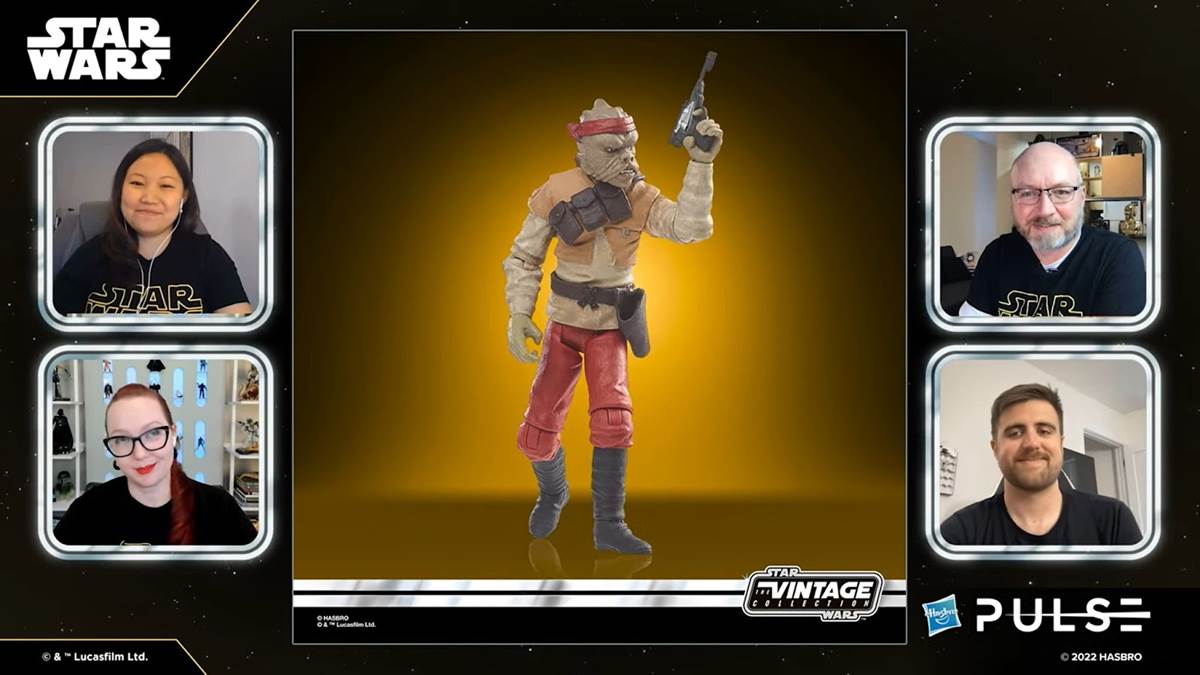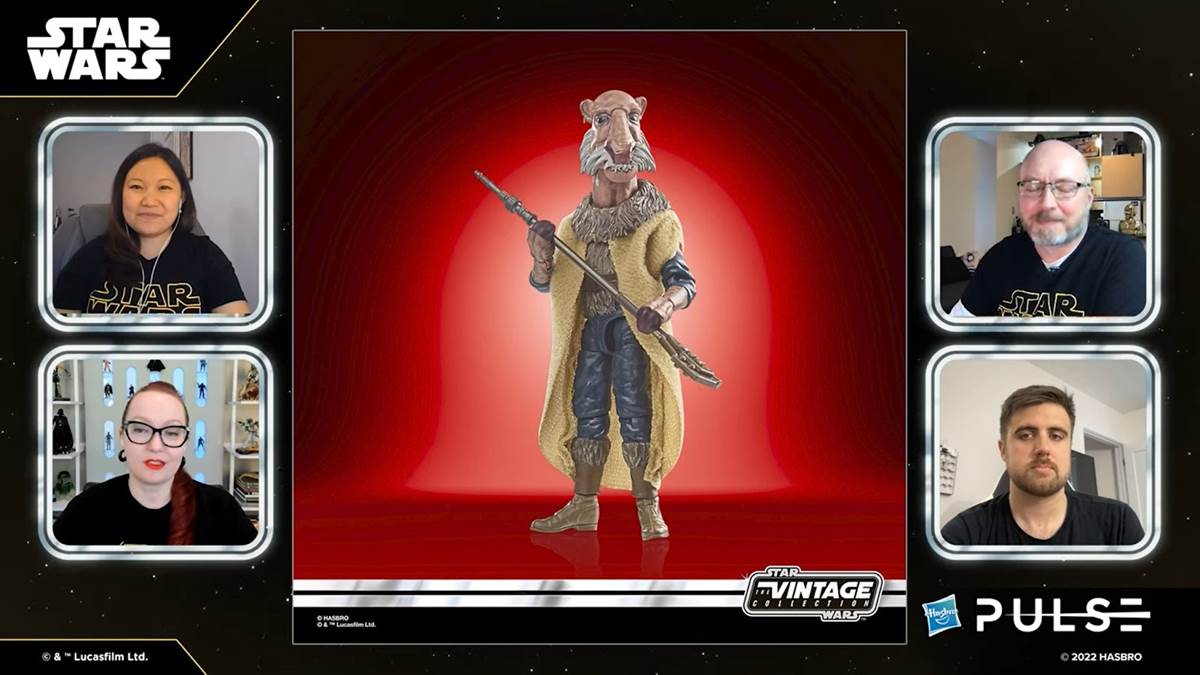 Next the team revealed some new Return of the Jedi figures for the 3 ¾-inch Vintage Collection in celebration of the movie’s upcoming 40th anniversary: Nikto (Skiff Guard), Kithaba (Skiff Guard), Wooof, and Saelt Maere (AKA Yak Face).
