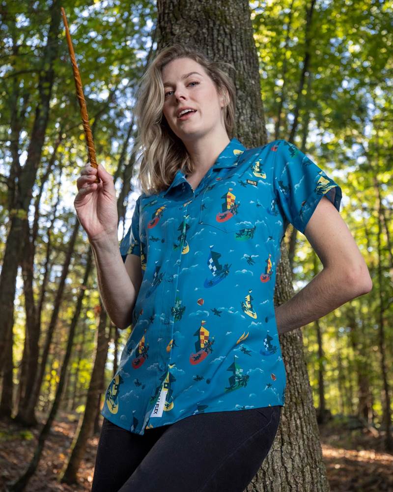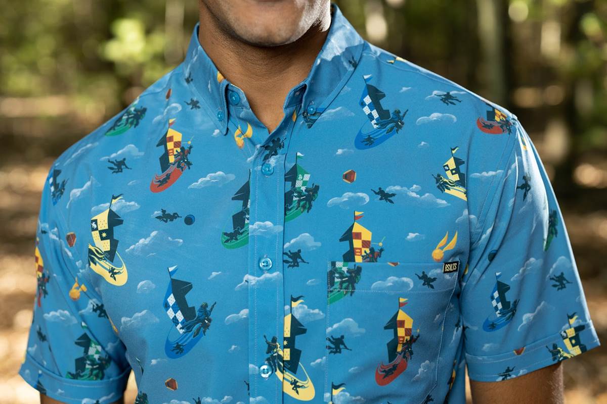 “Welcome, Seeker… of sweet threads, that is. You don’t have to swallow the Golden Snitch to be the hero of your next Harry Potter trivia night, just grab this hotter-than-Snape’s-flaming-coat KUNUFLEX button down featuring some high-flying Quidditch action. Whether you’re team Gryffindor, Hufflepuff, Ravenclaw, or Slytherin (really?), this shirt is 10 points to your wardrobe."