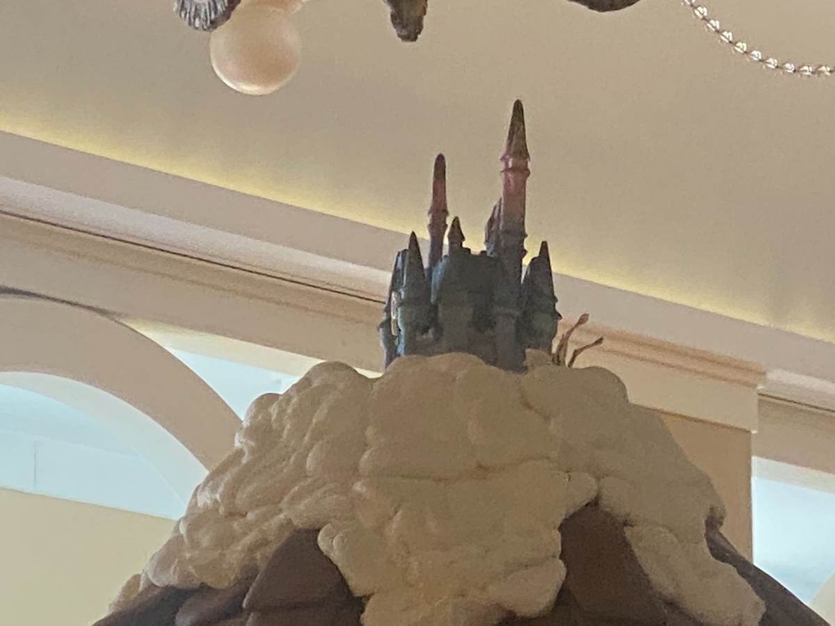 - On top of the snow covered mountain, you can see Cinderella Castle, which is decorated for the 50th Anniversary as well.