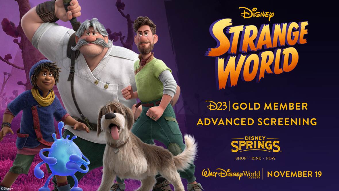 - D23 Gold Members have a chance to be among the first to see an advance screening of Walt Disney Animation Studios’ Strange World before it is released in theaters.