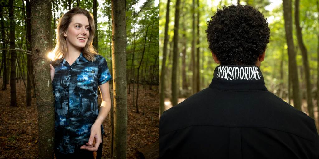 “Shadowy and forbidding like those who utter the incantation “Morsmordre," this BorlandFlex flannel is branded with the infamous Dark Mark. The skull with a slithering serpent tongue that adorns the sleeve is a menacing reminder of the evil that lurks around every corner of the Wizarding World. There may even be a sinister surprise hiding under the collar. Go ahead, pop it... embrace your dark side."