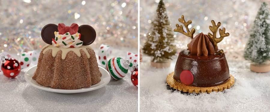 - Holiday Mickey Mousse: Chocolate chiffon cake, white and dark chocolate mousse, and white chocolate crisp pearls (New) (Available from Nov. 11 through Dec. 30)