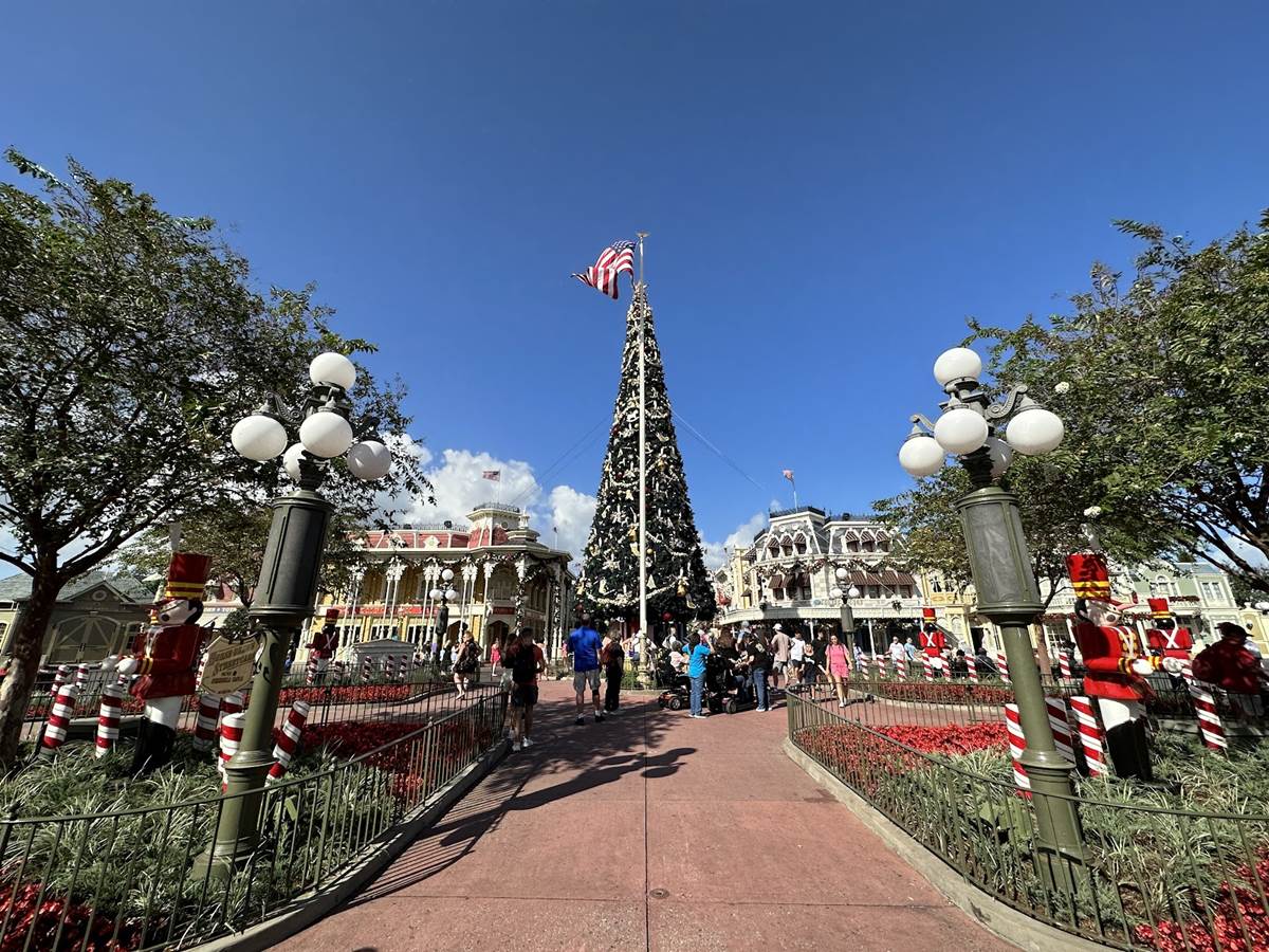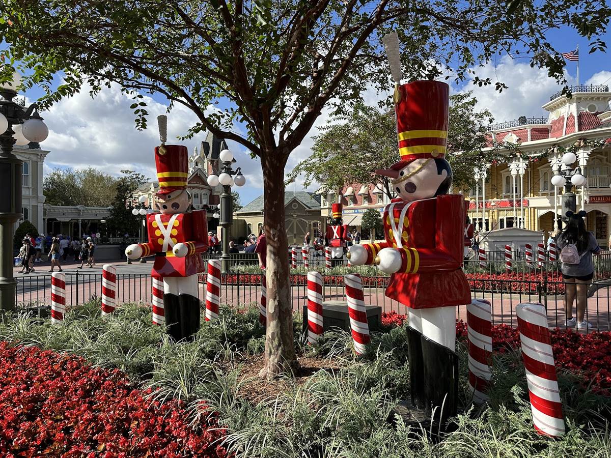 Main Street USA also plays home to the traditional toy soldiers scattered throughout Town Square, as well as the landmark Christmas Tree sitting at the foot of Main Street.