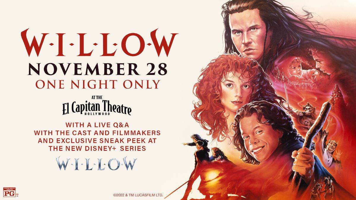 Tickets are on sale now to see Lucasfilm’s Willow at The El Capitan Theatre in Hollywood November 28 with a live Q&A after the movie followed by a sneak peek of the new Willow Disney+ series.